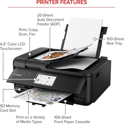 Canon PIXMA TR8620a - All-in-One Printer Home Office|Copier|Scanner|Fax|Auto Document Feeder | Photo, Document | Airprint (R), Android, Black, Works with Alexa