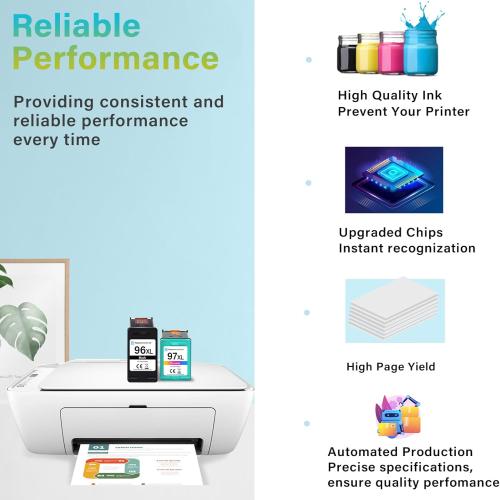 Printer Ink 96 97 XL High Yield Black/Color for HP 96 97 Ink Cartridges, 96XL 97XL Remanufactured Replacement Work with DeskJet 6940 6980 OfficeJet 7210 7310 7410 Photosmart 8030 8050 Printer