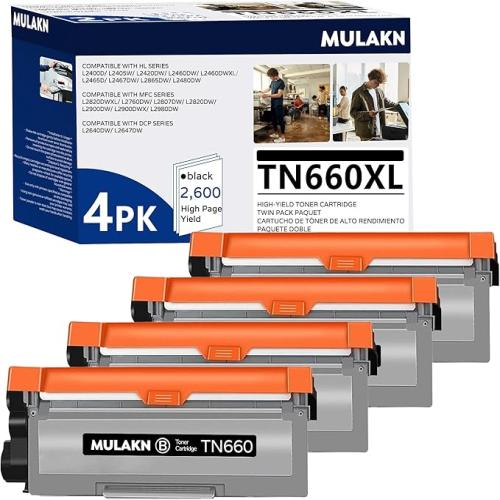 TN660 Toner Cartridge for Brother TN660 TN-660 TN 660 TN630 Compatible with HL-L2300D HL-L2380DW HL-L2320D DCP-L2540DW MFC-L2700DW MFC-L2685DW Printer (4 Black)