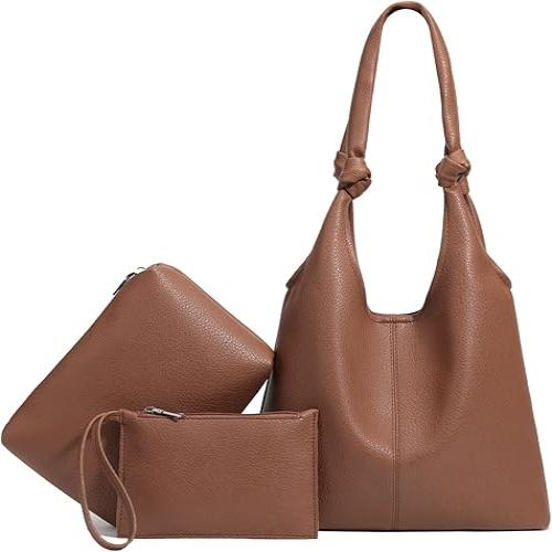 Vegan Leather Hobo Purses set, Slouchy Shoulder Bag Knotted Hobo Bags for Women with a small Purse and Clutch Handbag